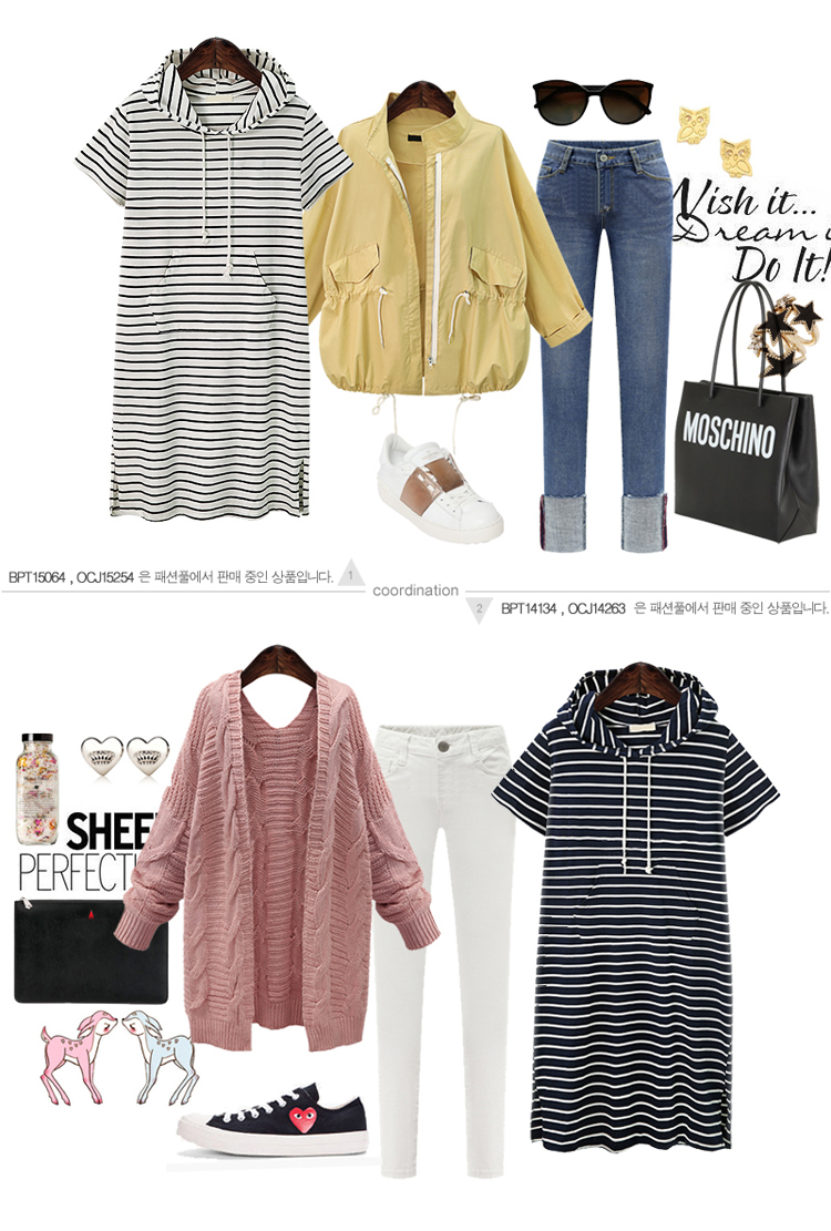 2018夏裝新款歐美風胖MM大碼女裝條紋連帽針織衫連衣裙