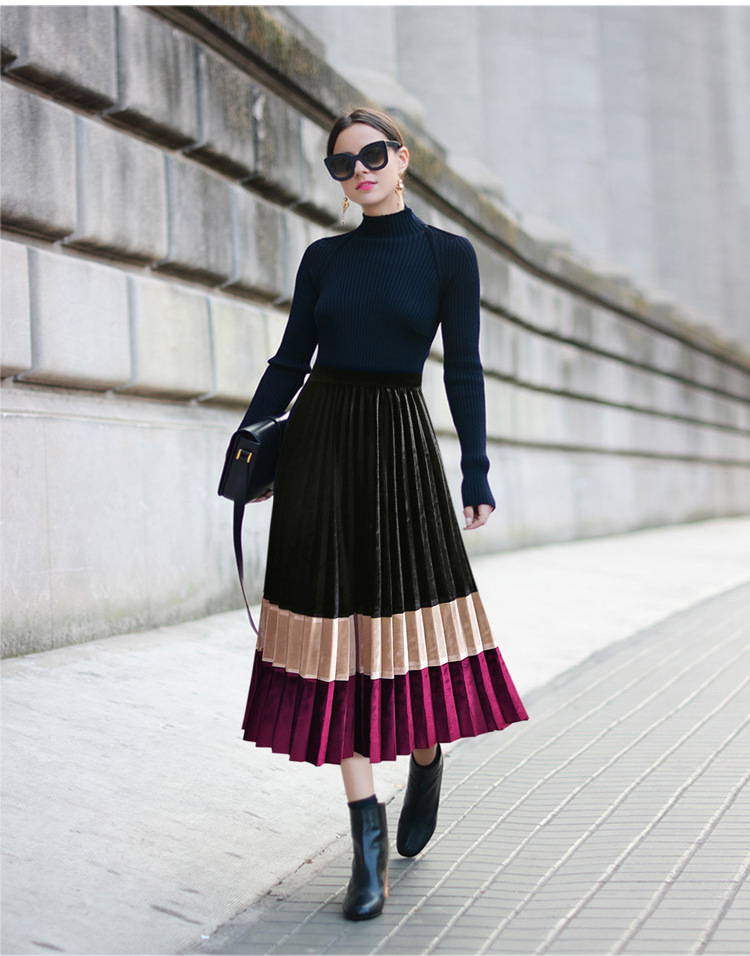 2019春 速賣通Ebay歐美風(fēng) wish 拼色百褶裙壓折百搭裙半身裙