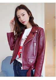 2018秋冬新款皮毛一體純色拉鏈機車外套長袖寬松皮衣短款上衣女