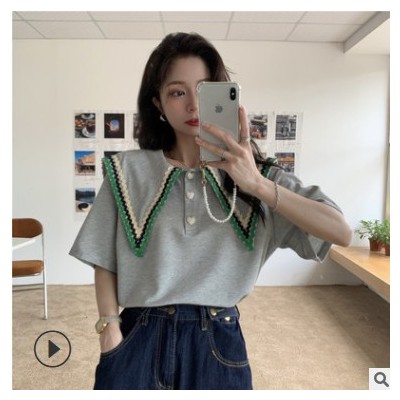 首頁(yè) > 供應(yīng)產(chǎn)品 > 海軍娃娃領(lǐng)短袖T恤女裝夏季2021新款日系學(xué)院風(fēng)鹽系衣服寬松上衣