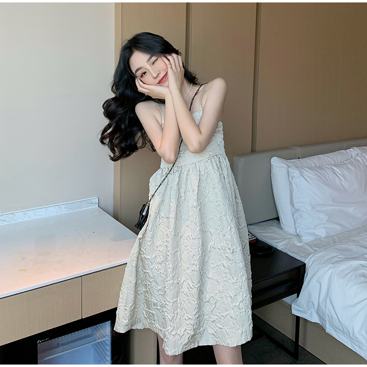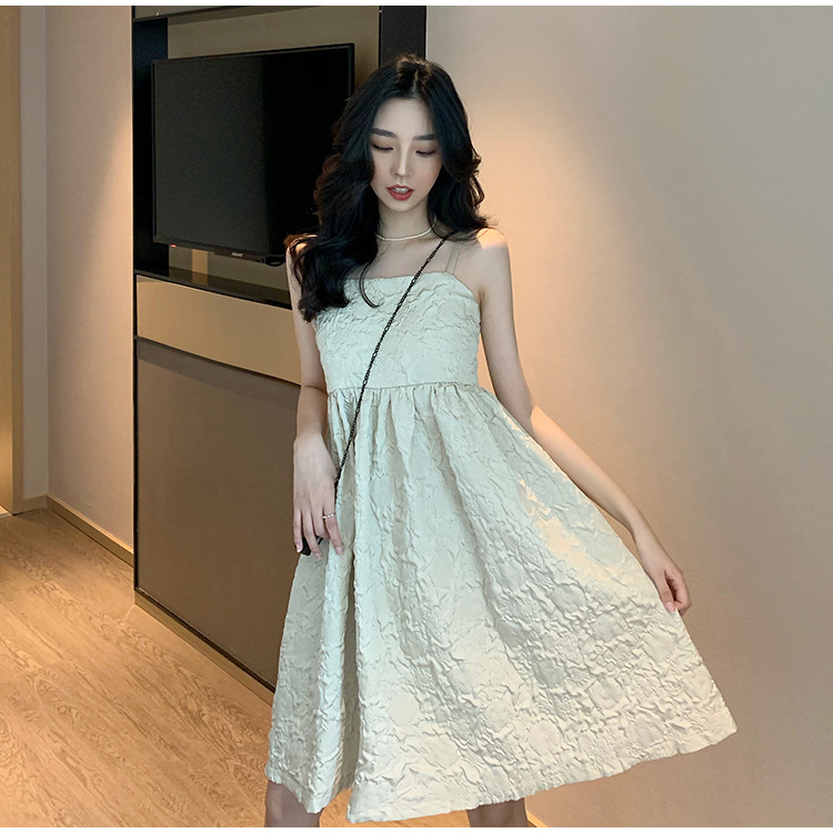 工廠直供韓版女裝赫本風輕熟氣質無袖高腰a字裙夏季吊帶連衣裙女
