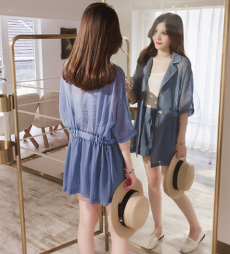 洋氣防曬開衫外套女2018夏季新款小西裝套裝上衣闊腿褲短褲兩件套