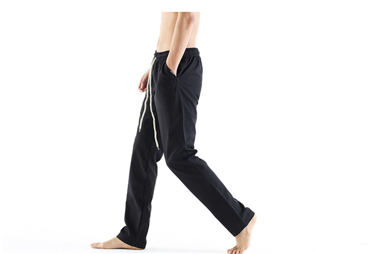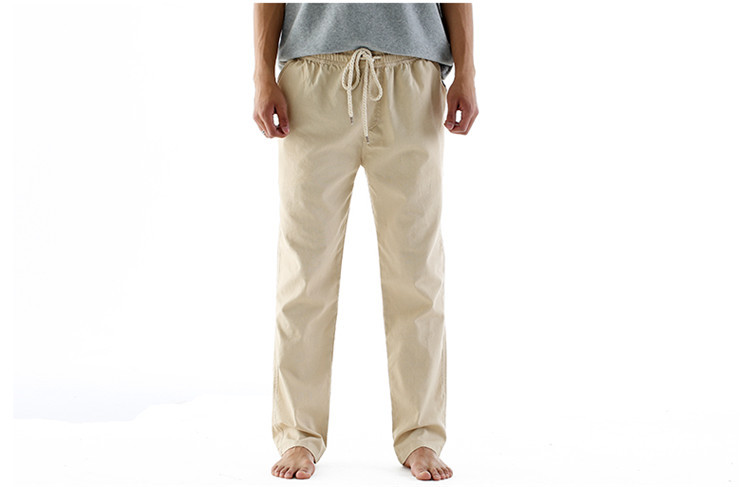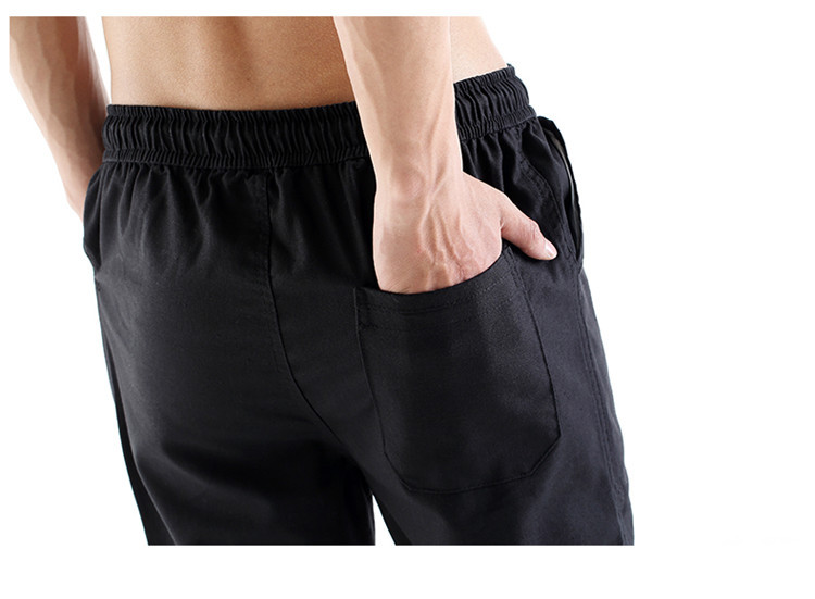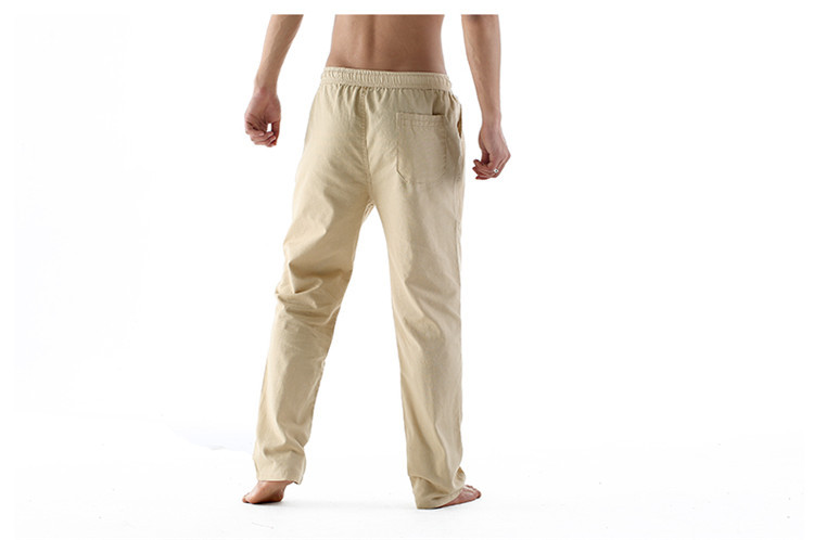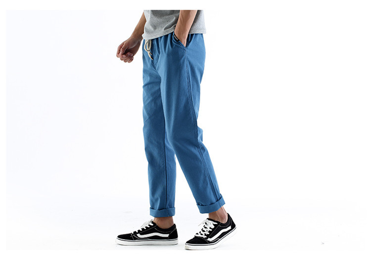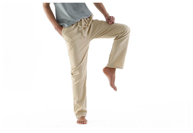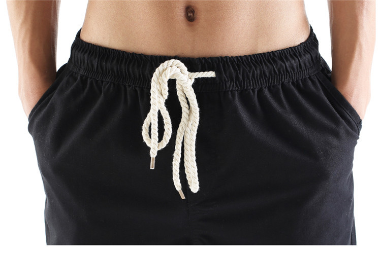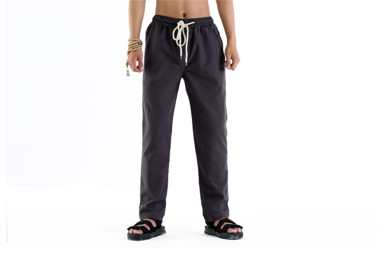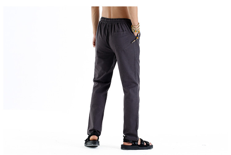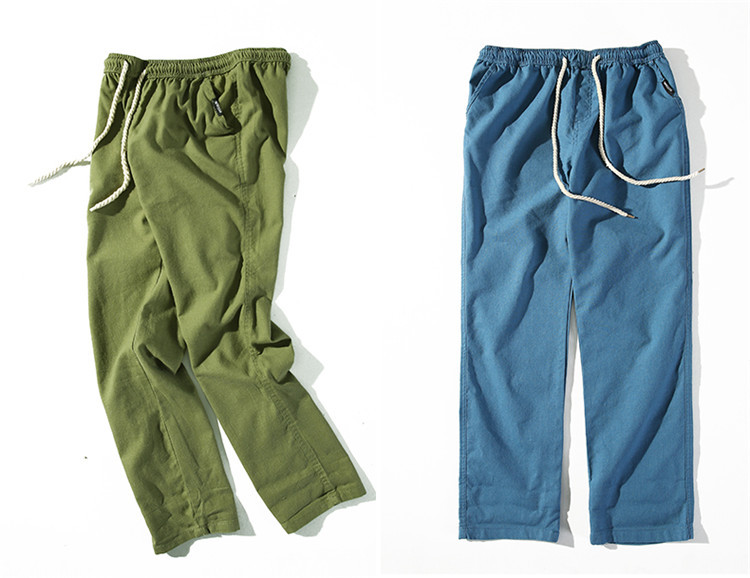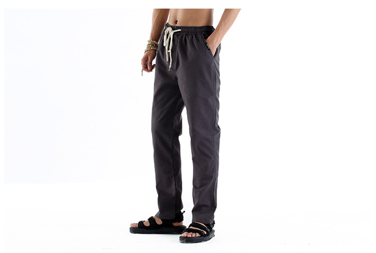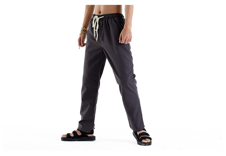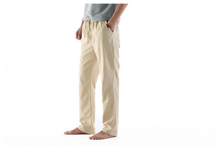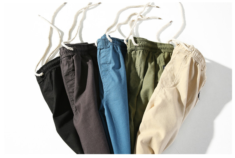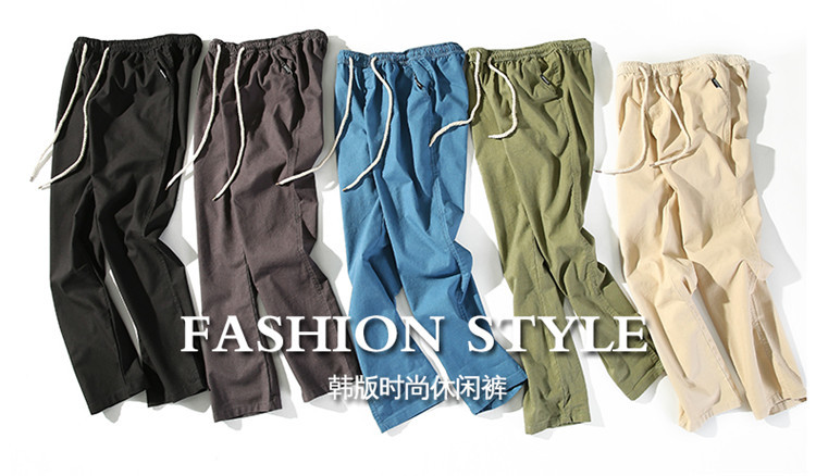 男休閑褲夏裝亞麻褲時尚大碼寬松褲子運動棉麻長褲潮松緊褲系繩子