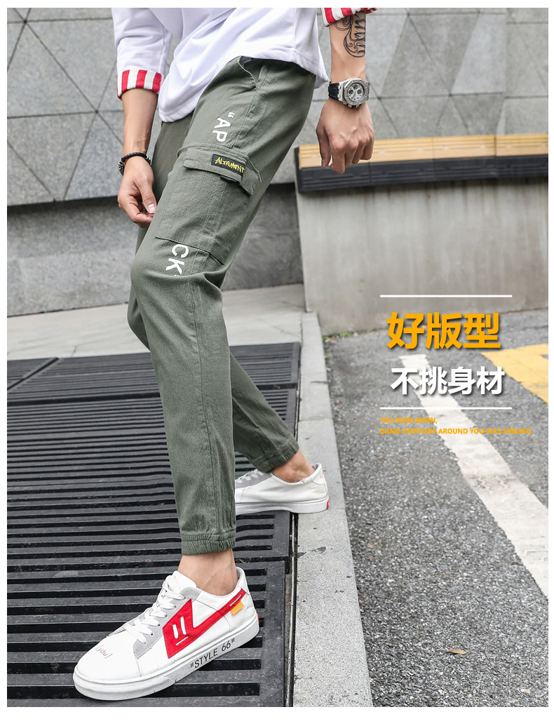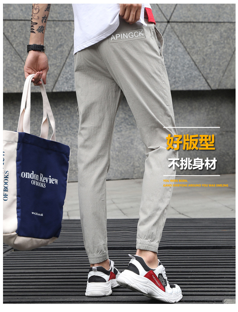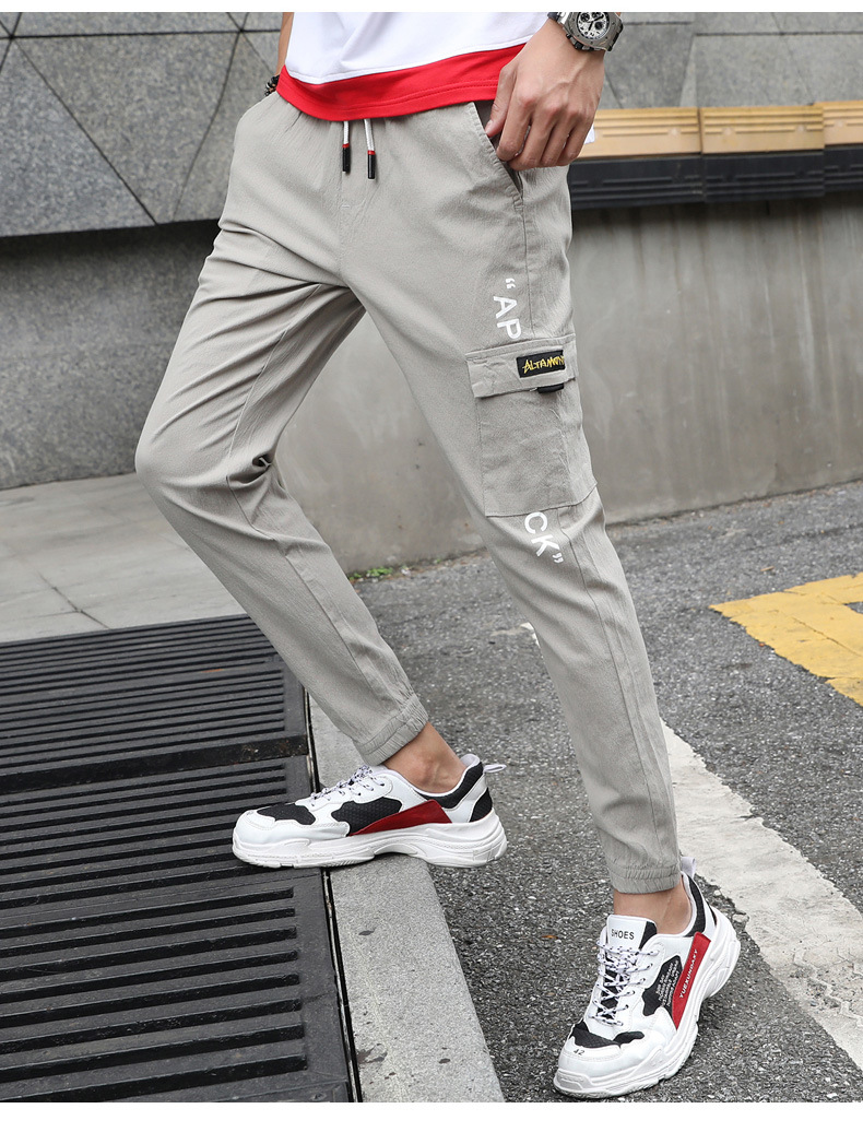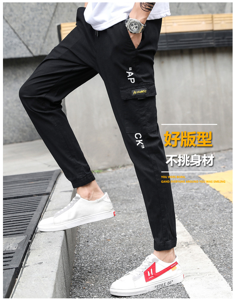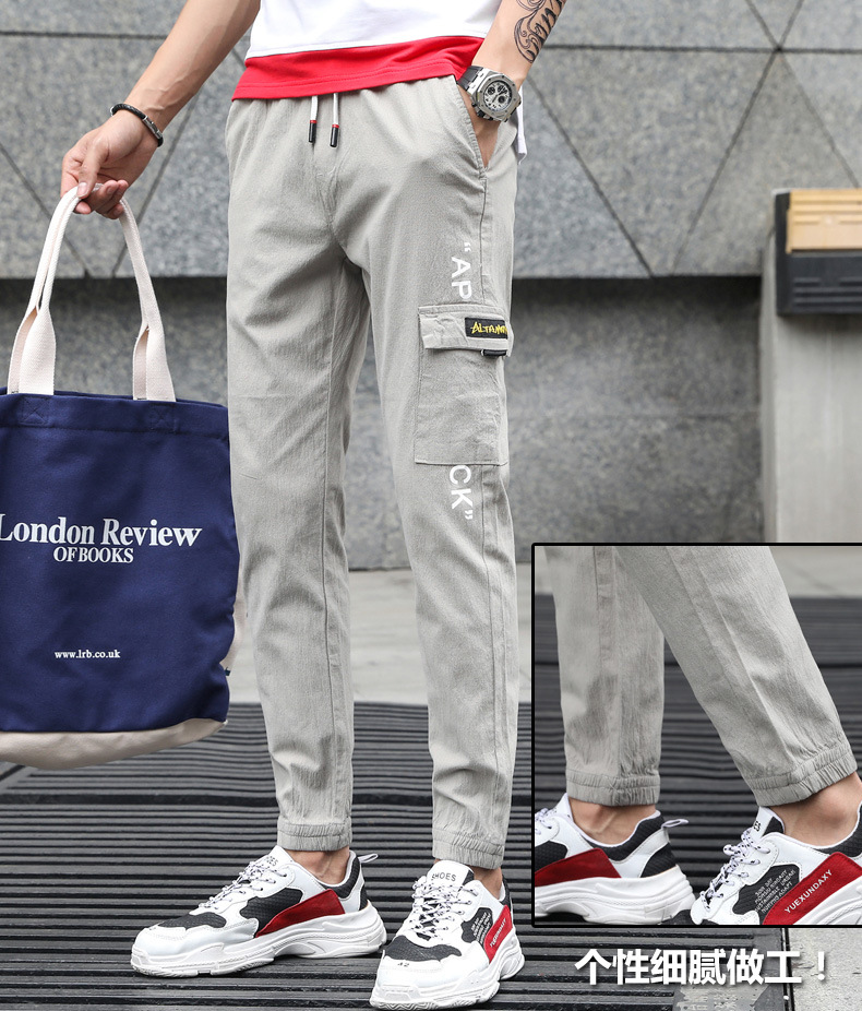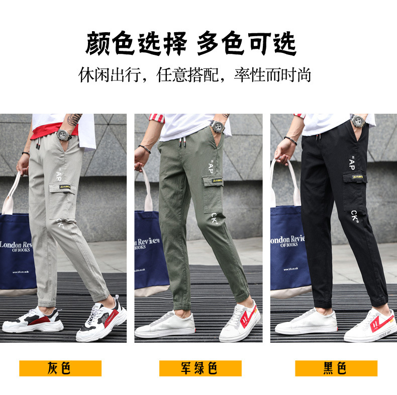 2019夏季新款男士休閑褲運動冰絲工裝褲收腳長褲小腳褲男裝長褲包