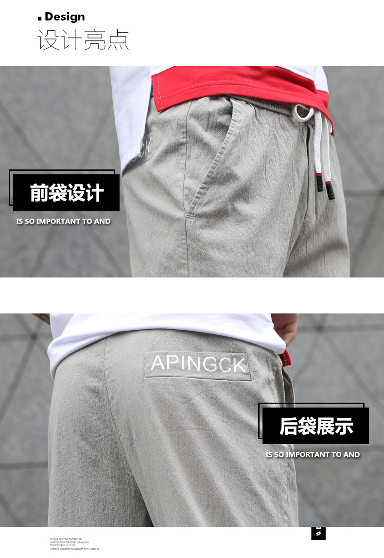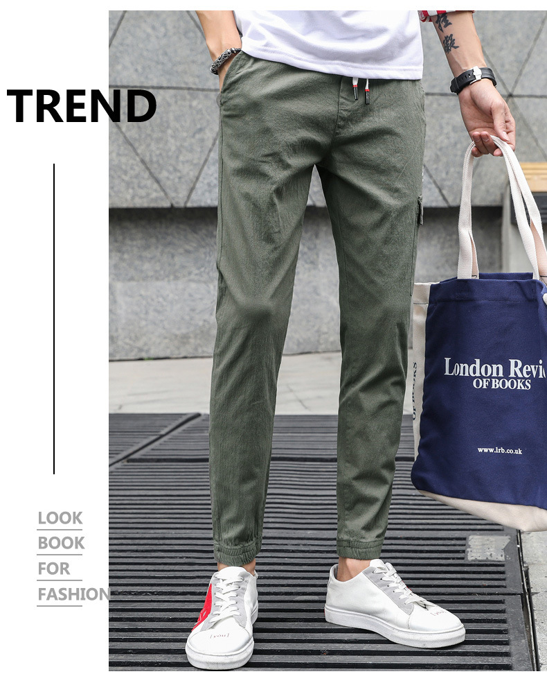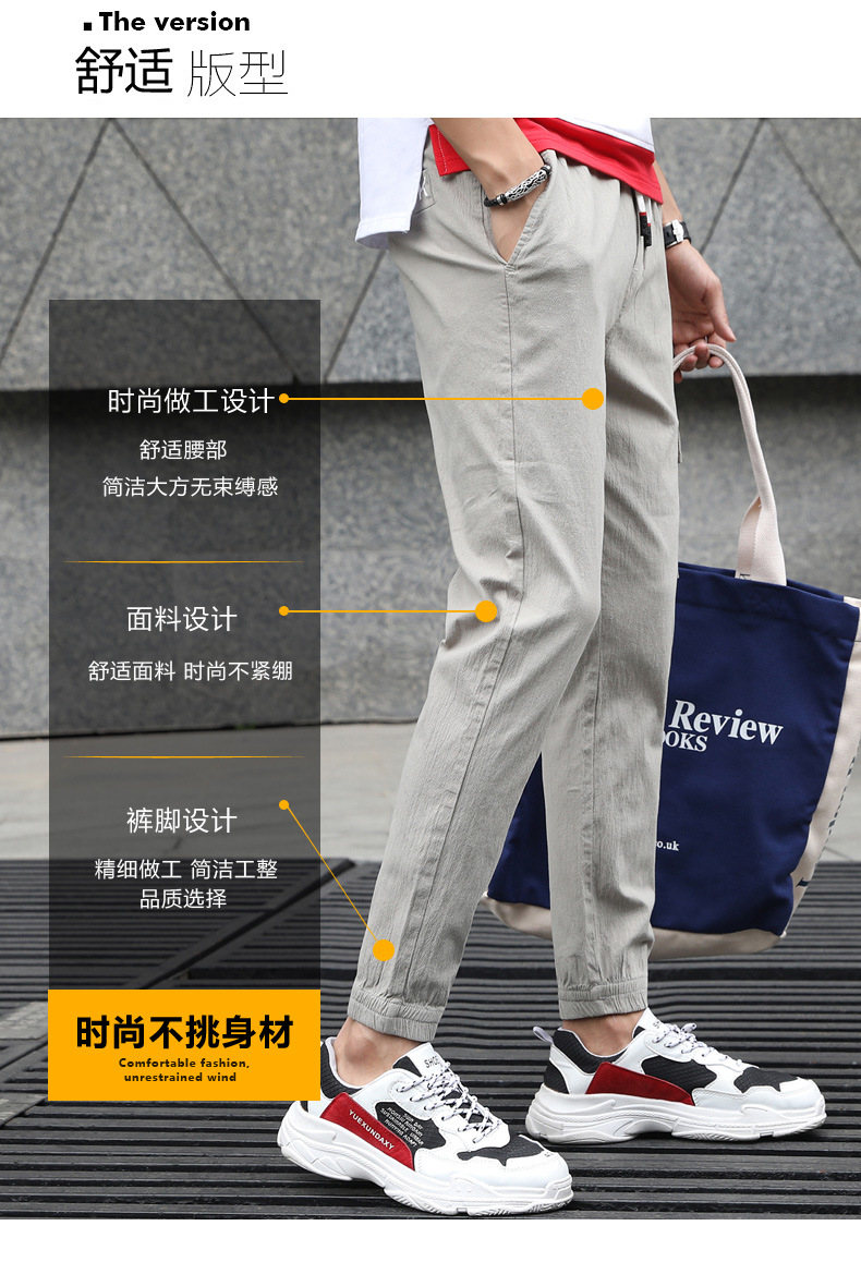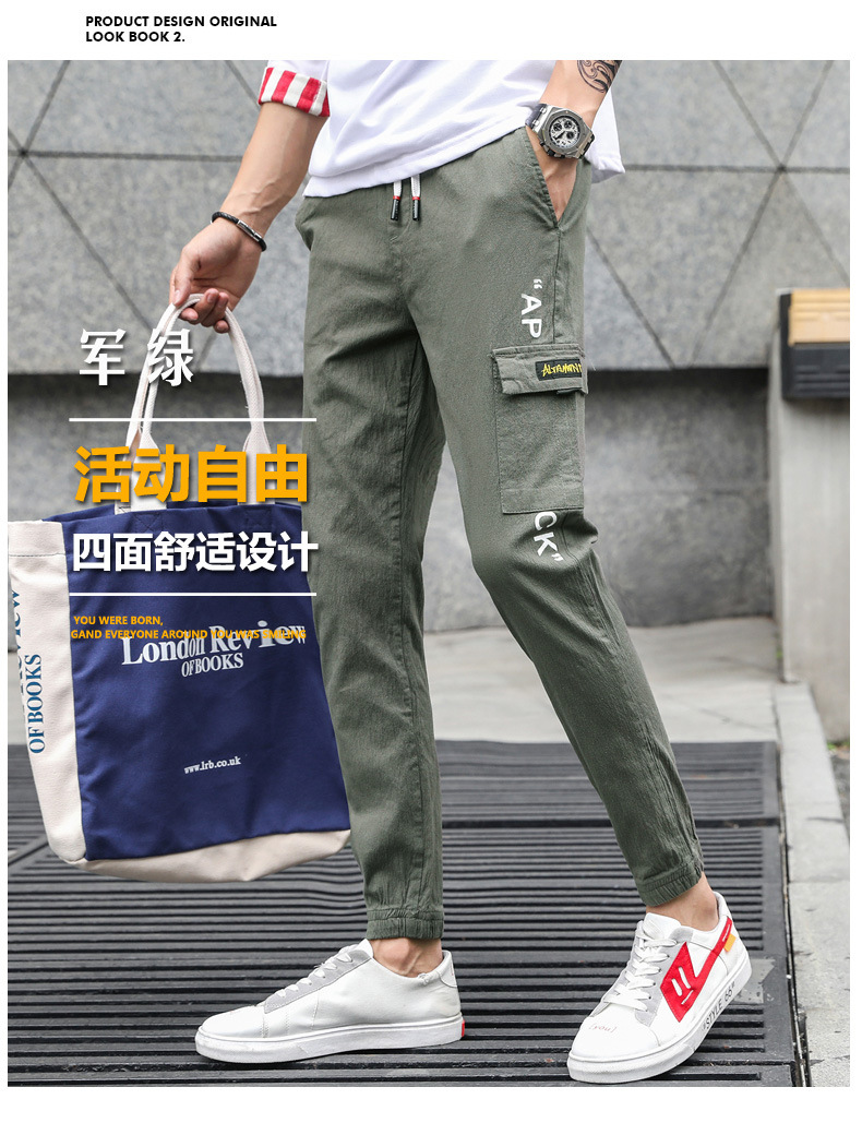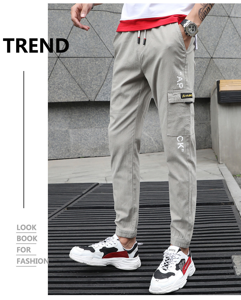 2019夏季新款男士休閑褲運動冰絲工裝褲收腳長褲小腳褲男裝長褲包