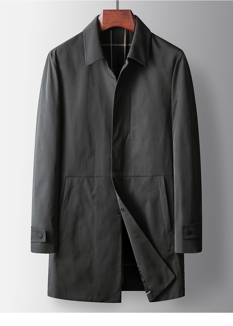 男式風衣2025春秋新款中青年輕奢商務休閑中長款翻領免燙風衣外套