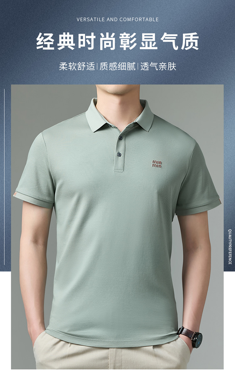 高級感男式POLO衫2025夏季絲光珠地短袖t恤輕奢商務青年休閑體恤