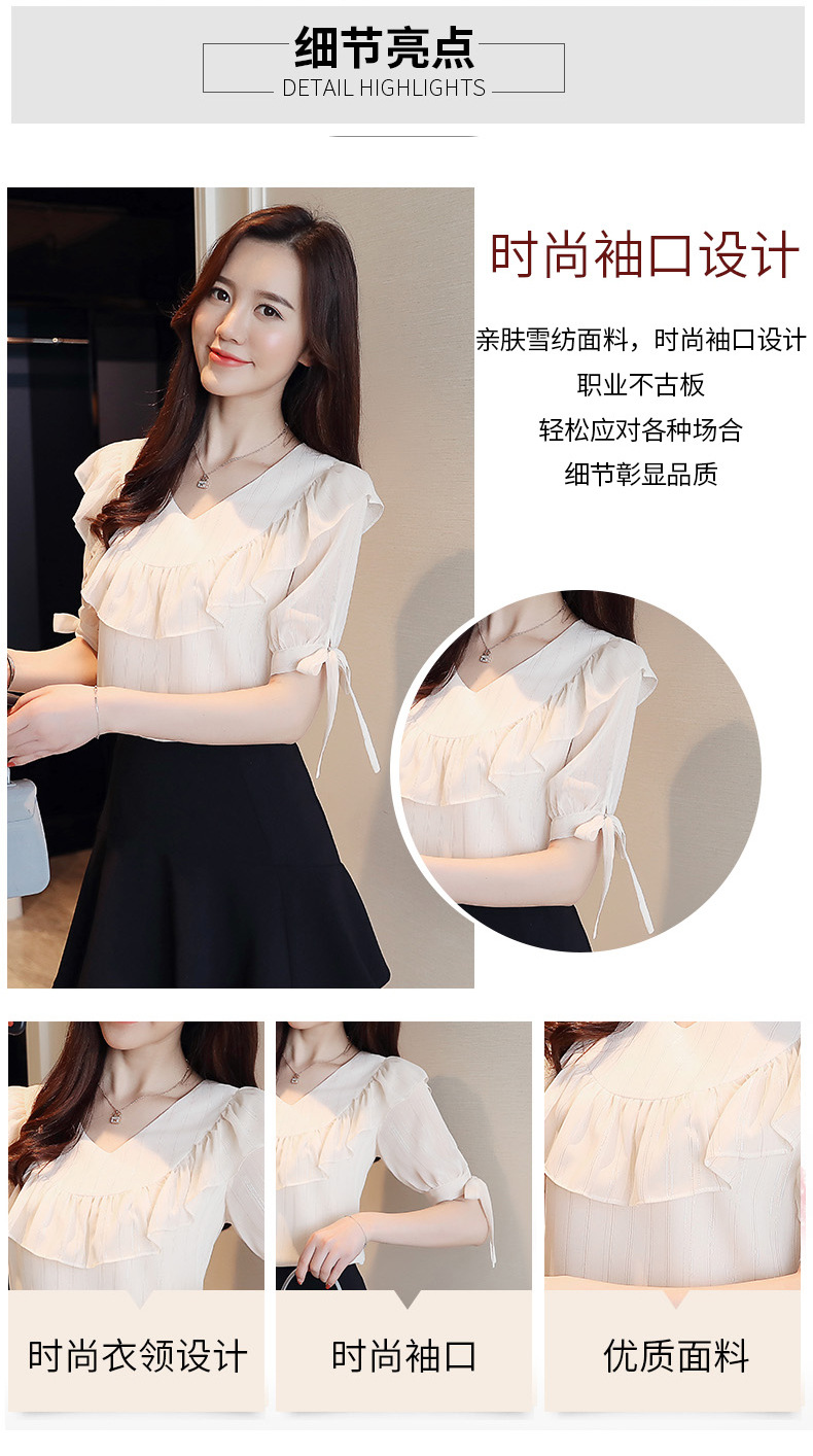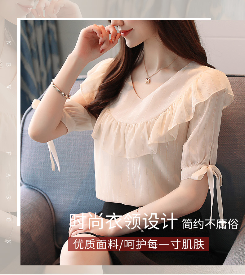 2018夏季新款短袖韓版雪紡衫女打底金線有里布防透甜美上衣女