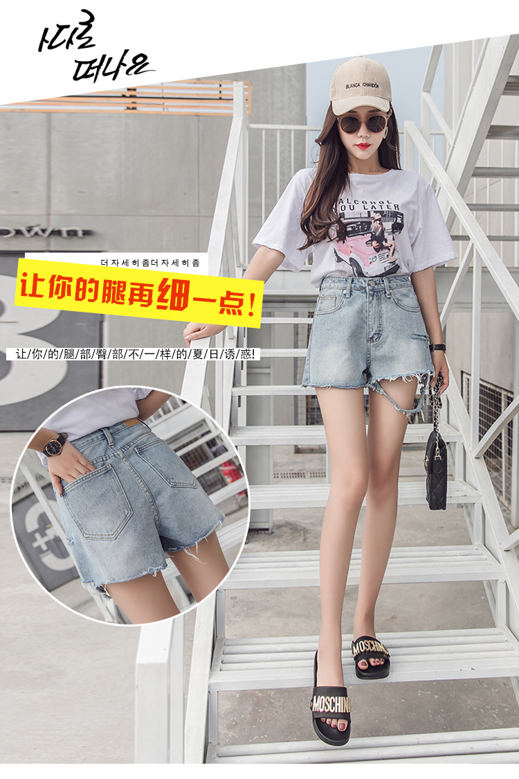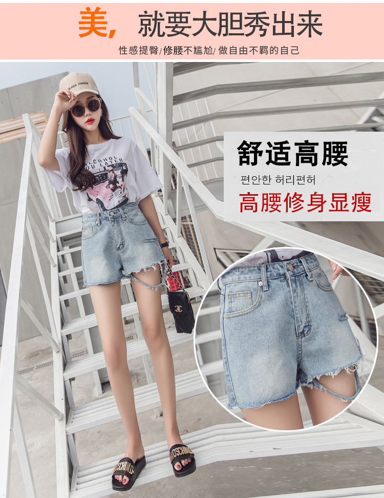 2018韓版新款時尚百搭氣質A字寬松破洞卷毛邊女學生牛仔短褲