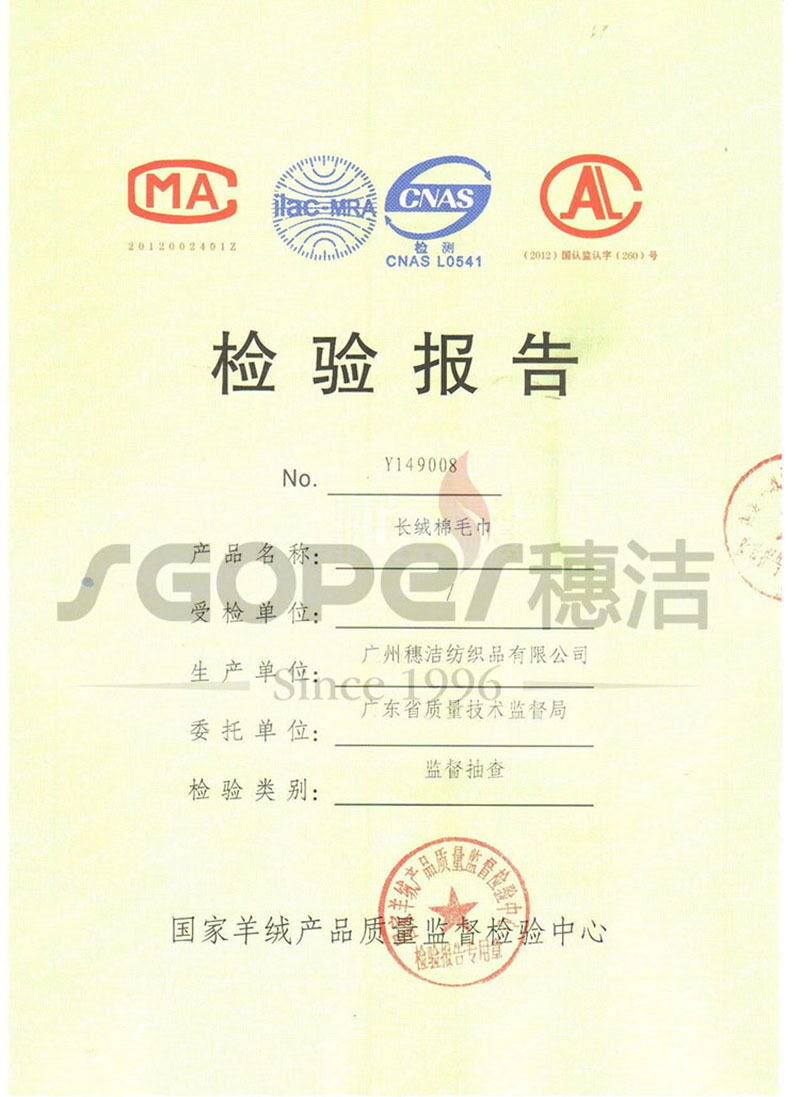 廣州穗潔紡織品有限公司是一家致力于毛巾生產、加工和毛巾批發為一體的一般納稅人企業,有數千平方的現代化廠房,擁有進口劍桿織機40多臺,多臂織機30多臺,提花織機30多臺以及相應的毛巾生產設備數十臺,日產各類毛巾達30000條,2011年年銷售額達到4500萬,客戶遍布全國及海內外。工廠本著“顧客至上”的原則為客戶提供**的產品。為保證產品質量,工廠與國內**棉紡廠合作在新疆建有棉花生產基地,在原材料上保證了產品的品質,此外,工廠擁有一支具有豐富經驗和專業文化水平的技術檢測人員,嚴把產品出廠質量關。為迎合市場需求,公司專業設計團隊,對于毛巾的款式于材質結合進行深度的研發,數年來,已經開發出數十款深受廣大客戶喜愛的毛巾產品。本公司產品圖案艷麗清晰、色牢度好不易掉色,手感柔軟細膩,材質環保健康,吸水性強,價格適中,包裝精美,深受國內外廣大客戶的喜愛,是在業內享有良好的聲譽的毛巾廠。