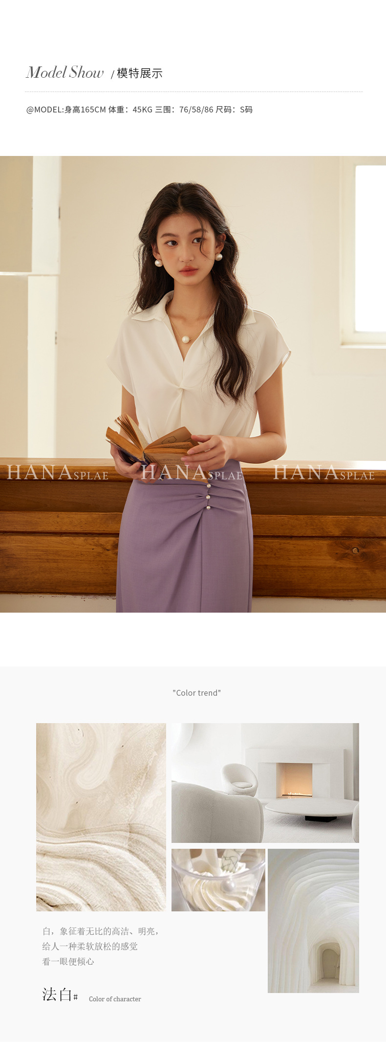 [爆款力推 ]含那 夏季新款簡約套頭襯衣翻領(lǐng)打扭設(shè)計感上衣H16003