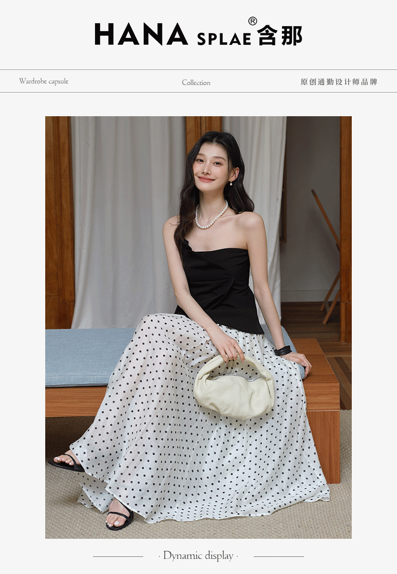 HANNA 含那廣州十三行波點半身裙女夏季新款高腰顯瘦A 字半裙H7282