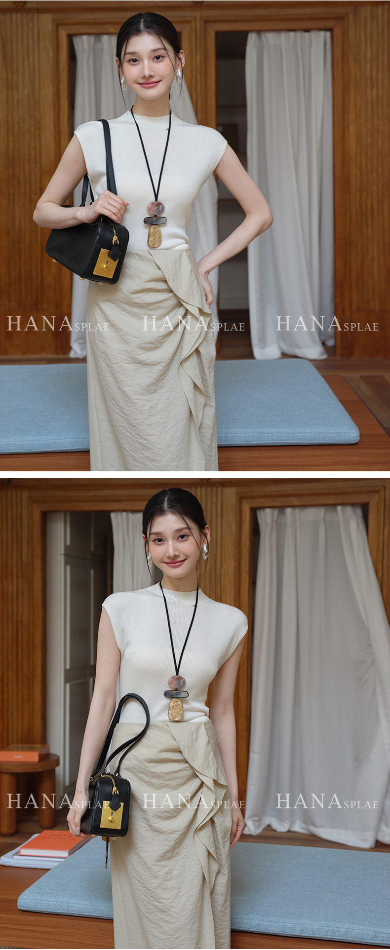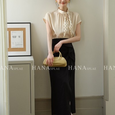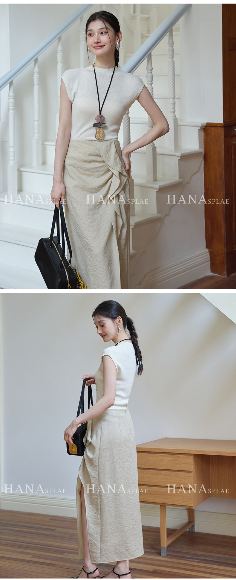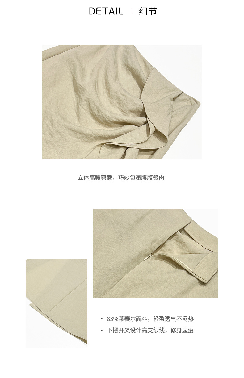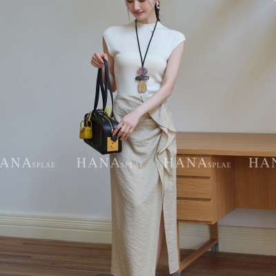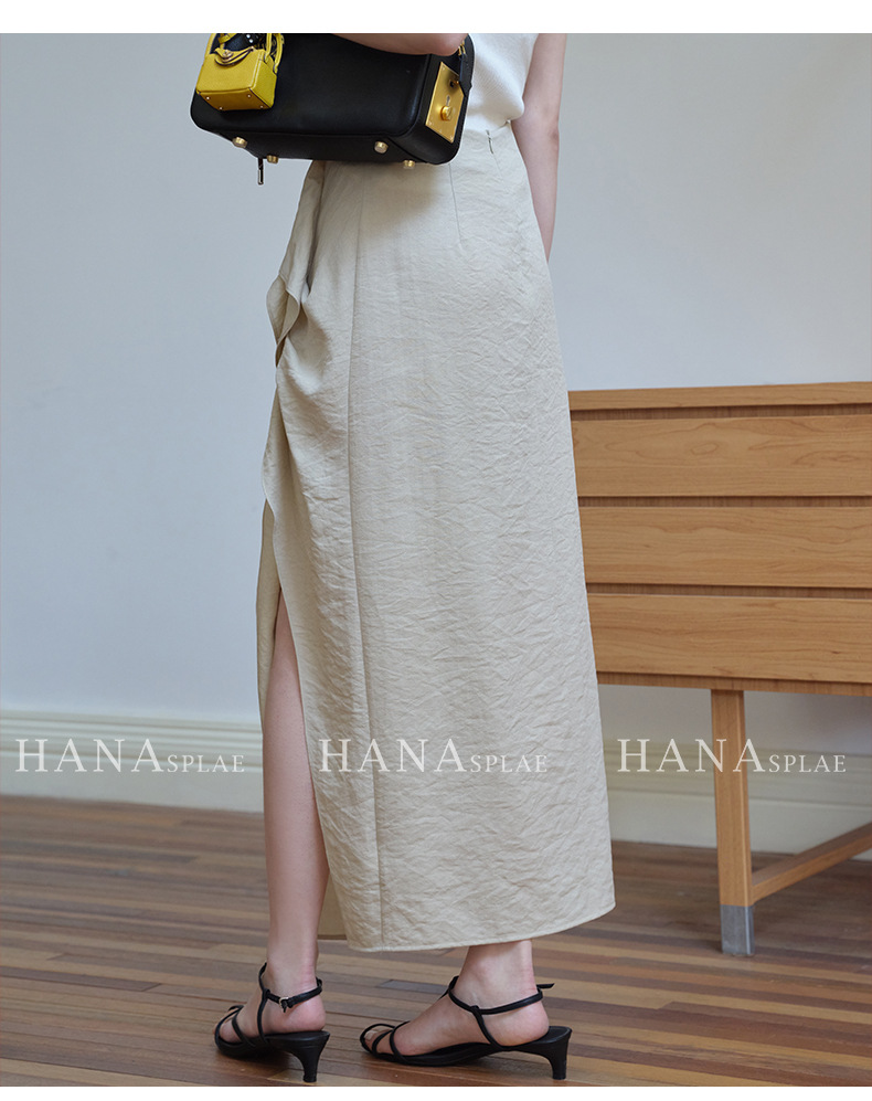HANNA 含那廣州十三行萊賽爾半身裙女夏季新款褶皺開叉包臀裙7359
