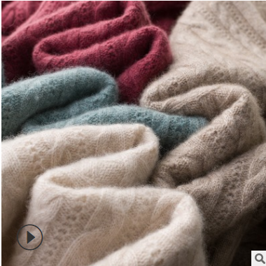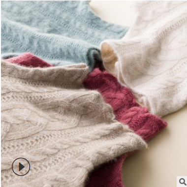 加厚堆堆領麻花山羊絨衫女2019秋冬季新款短款純色毛衣打底針織衫