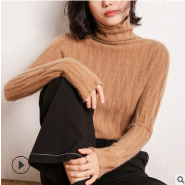 氣質半高領提花山羊絨衫百搭毛衣女2019秋冬新純色修身針織打底衫