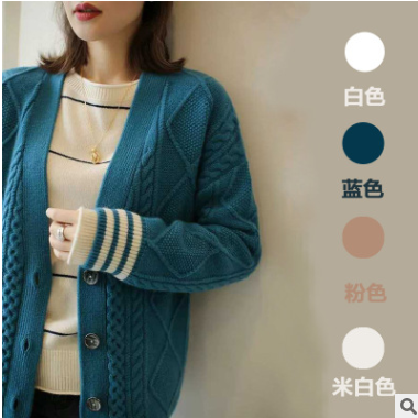 新品羊毛衫女v領開衫韓版毛衣外套女2019秋季寬松羊毛針織開衫潮