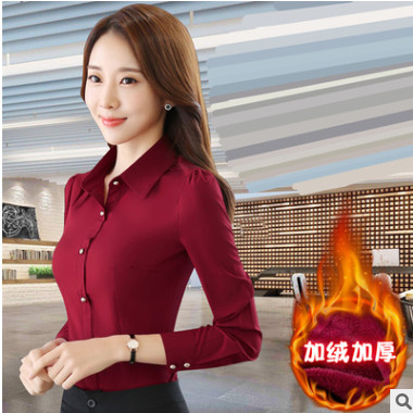 2018秋冬新款保暖襯衣打底衫寸衫OL職業工裝加厚加絨白襯衫女修身