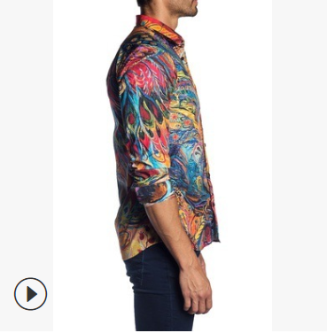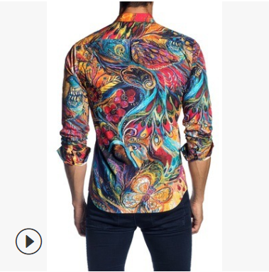 MTL男裝|歐美秋季個性鏈子印花襯衣男ifashion復古雪紡花襯衫男潮