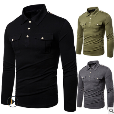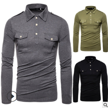 歐美軍工2019新款秋裝歐碼翻領長袖T恤亞馬遜外貿熱賣休閑工裝T恤