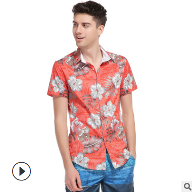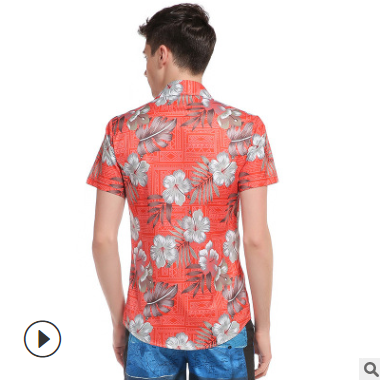 外模實拍外貿男士碎花圖案3D印花棕櫚樹沙灘休閑短袖襯衫