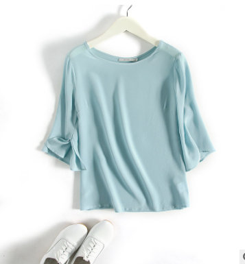 夏季新款真絲T恤短袖女士上裝純色圓領寬松高端女裝桑蠶絲貨源