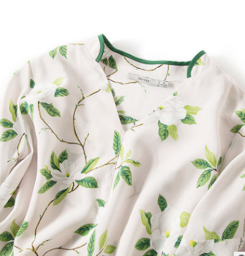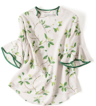 女裝2018夏季新款小清新印花真絲上衣五分袖寬松袖口撞色T恤