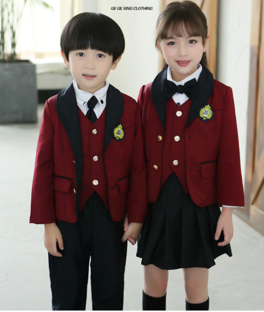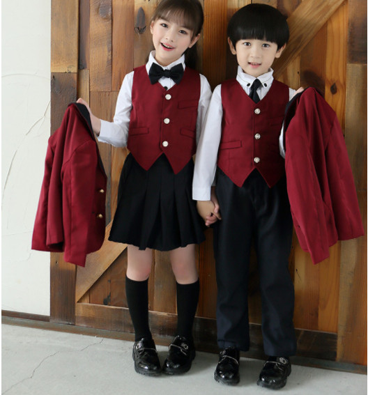 兒童秋裝校服學院風女童秋裙男童西裝四件套中大童小學生班服套裝