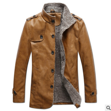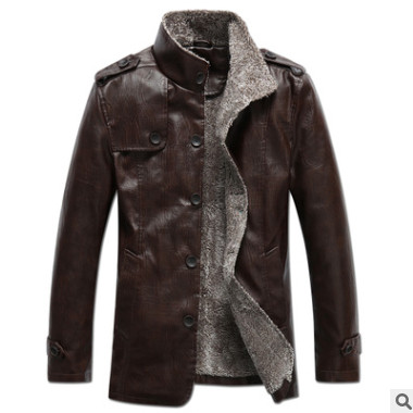 石獅外貿(mào)男式皮衣大碼男裝秋冬時(shí)尚男式中長(zhǎng)款皮外套加絨男士外套