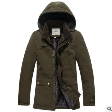 祥戴直銷秋冬季男士連帽加絨加厚純棉水洗中長款外套大碼軍旅棉衣