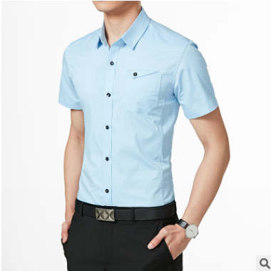 短袖襯衫男2019新款純色寸衫修身休閑白色職業(yè)工裝男士襯衣上衣