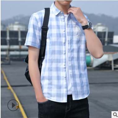 夏季格子襯衫男休閑薄款外套短袖男士襯衣韓版潮時尚純棉寸衫男裝