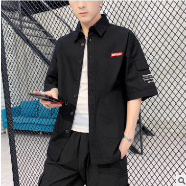 夏季5五分袖襯衫男中袖韓版潮流純棉工裝短袖襯衣薄款寬松休閑男