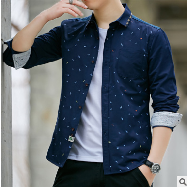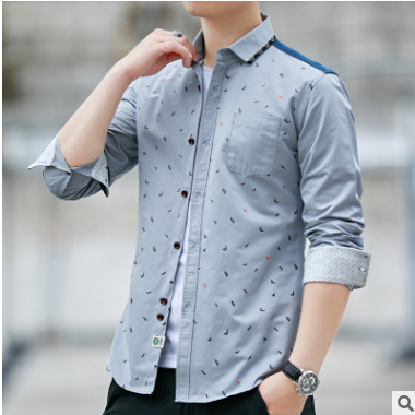 2019春秋季新款襯衫男長袖韓版休閑潮流印花男裝帥氣襯衣男士外套