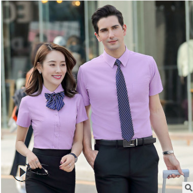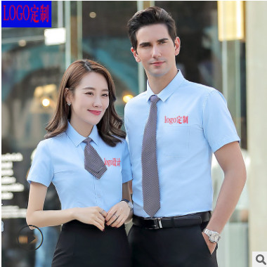職業裝夏季男女同襯衣款短袖純色商務襯衣銀行工作服襯衫定制logo