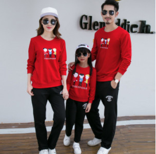 韓國親子裝秋冬裝2018新款家庭裝 童裝休閑衛衣套裝一件代發