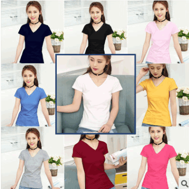 t恤女短袖2019新款夏季百搭純色半袖白色圓領(lǐng)廠家批發(fā)體恤打底衫