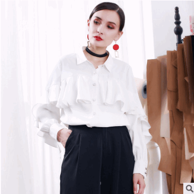 襯衫女長袖雪紡衫2019春裝新款韓版寬松大碼顯瘦荷葉邊洋氣質上衣