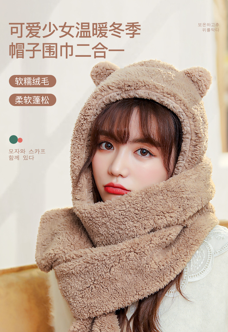 冬季帽子圍巾手套一體女三件套可愛保暖小熊耳朵鹿角圍脖DMZ52