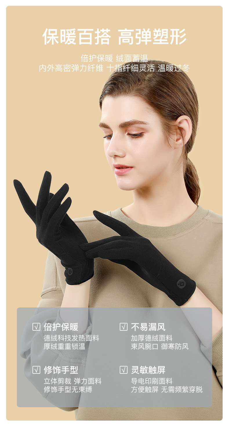 新款冬季保暖手套女騎車徳絨自發熱觸屏防滑潤膚顯瘦薄款手套DY44