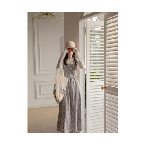 2021年新款碎花連衣裙女早春復古氣質長款背帶小個子長裙可代理