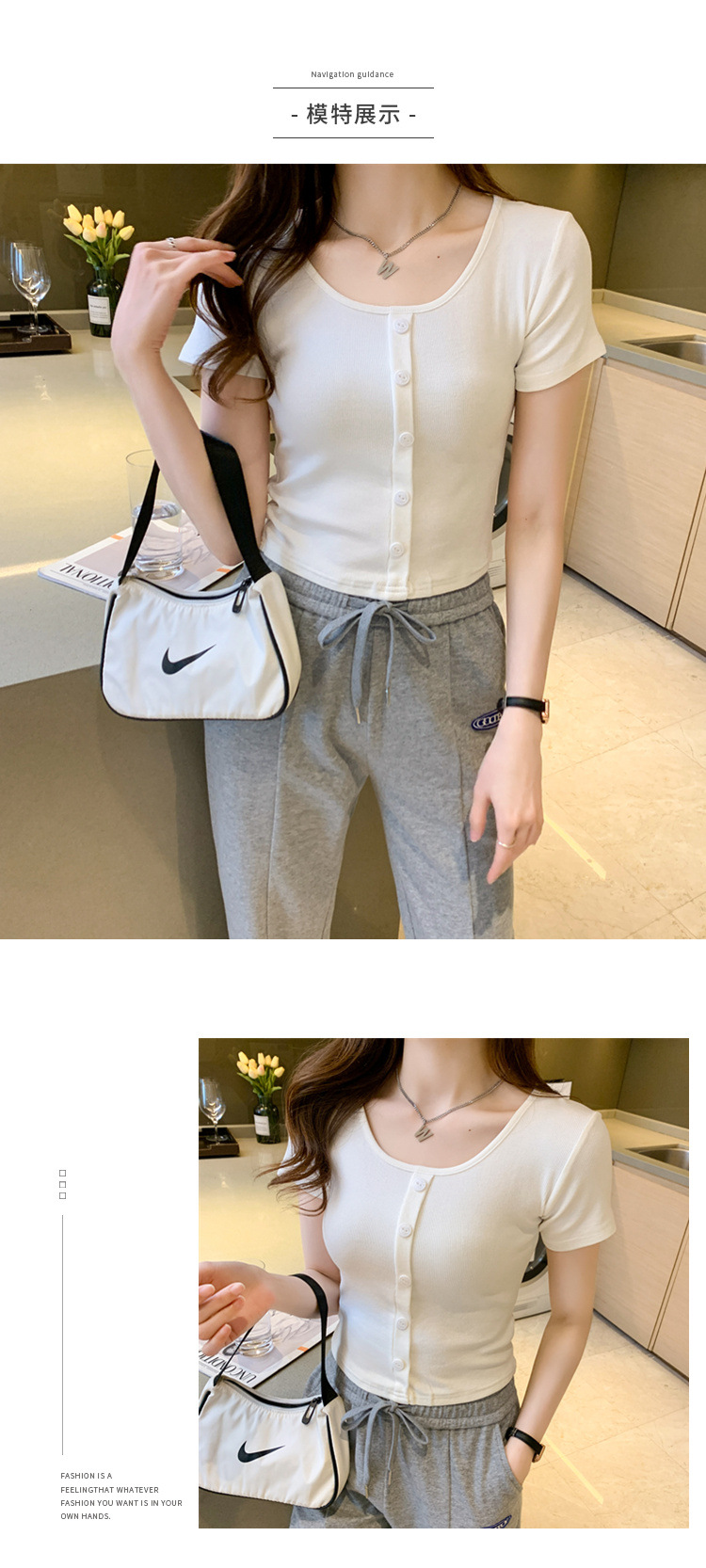 產(chǎn)品: 瀏覽次數(shù):282白色雙圓領(lǐng)t恤女短袖2021新款大領(lǐng)口法式復(fù)古紐扣緊身短款上衣夏
