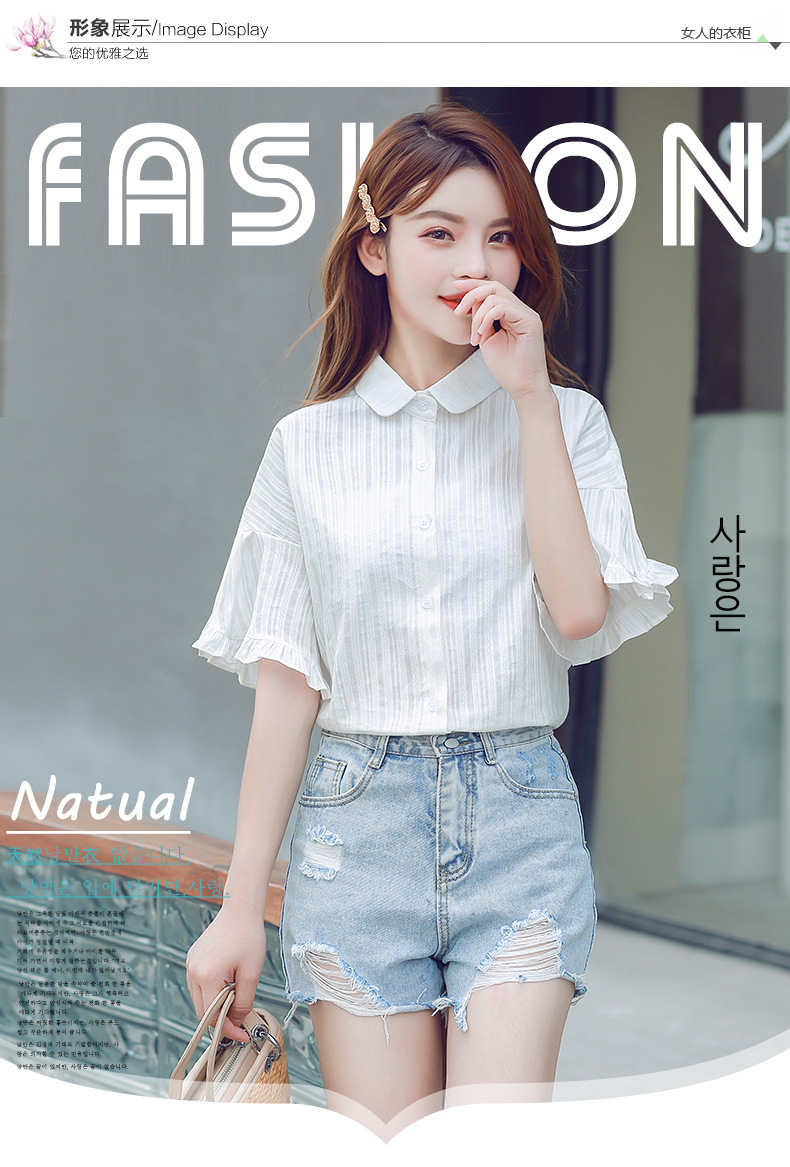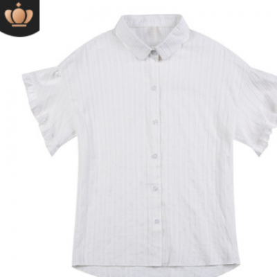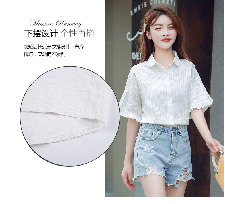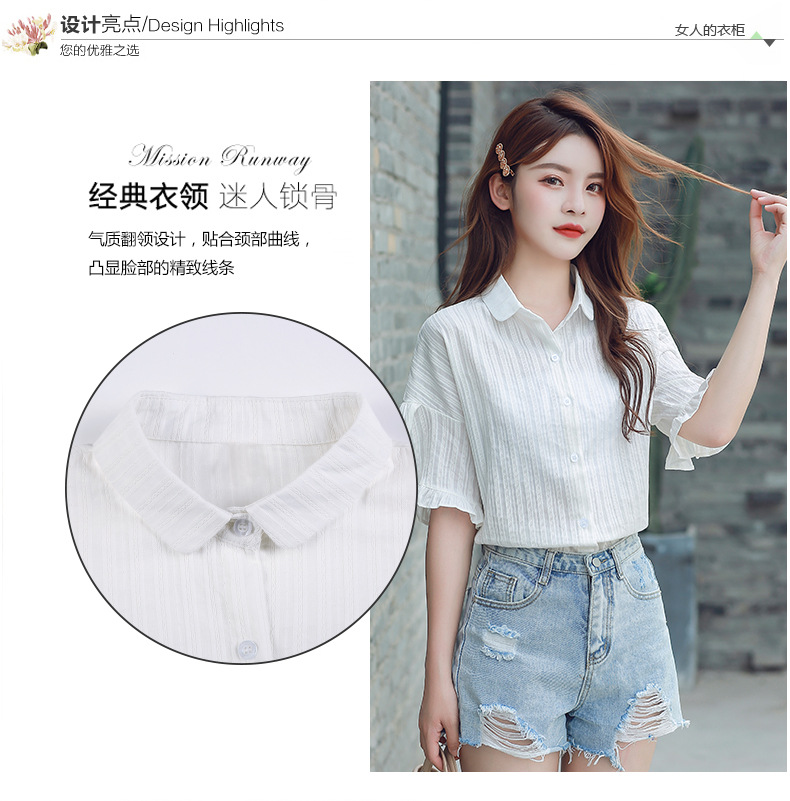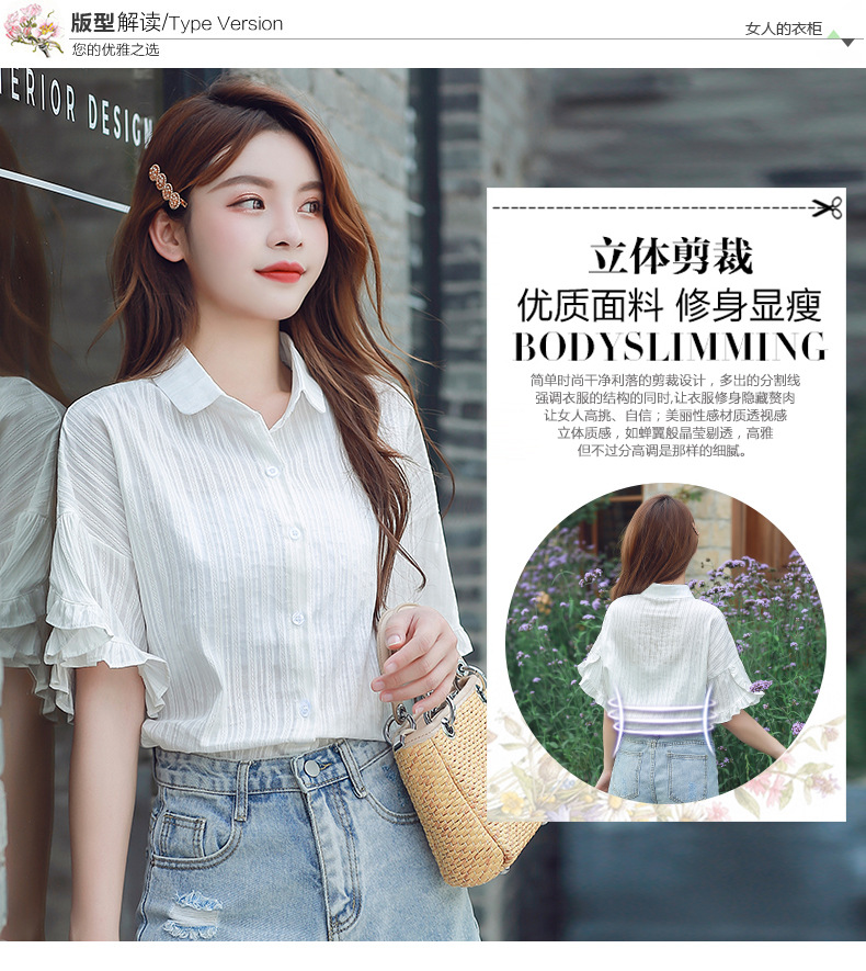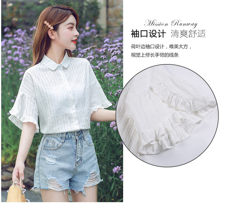 白襯衫女荷葉邊上衣夏2021新款設計感小眾寬松洋氣娃娃領短袖襯衣