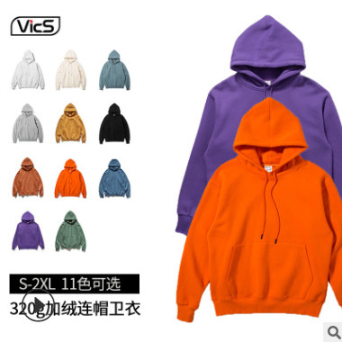2019秋新款純色連帽衛衣定制diy潮流寬松加絨男裝套頭印logo班服