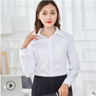 【一件代發】加絨白襯衫女加厚保暖職業裝修身長袖韓版工作服大碼
