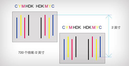 噴嘴設置 | 每種顏色1440個噴嘴 | |