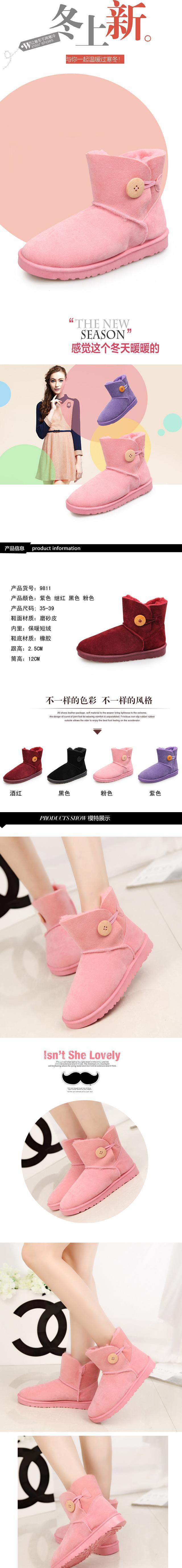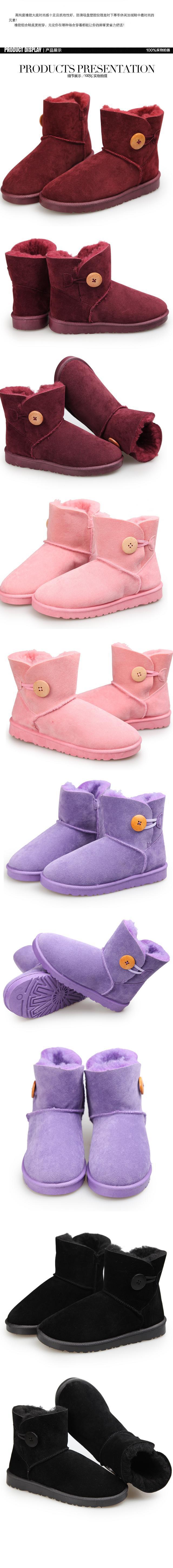 2014秋冬季新款皮毛一體保暖加厚紐扣低筒雪地靴女低幫靴