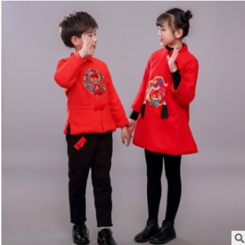 兒童唐裝漢服冬季男童女童寶寶紅色喜慶拜年服元旦演出服加厚童裝