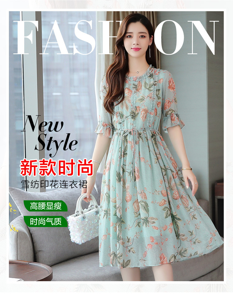 實拍雪紡碎花大碼女裝連衣裙新款夏胖mm很仙的遮肚顯瘦過膝長裙子