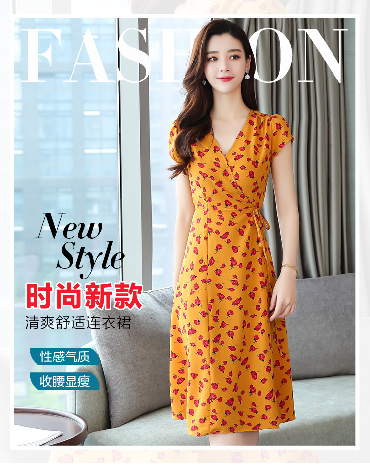 實拍海邊沙灘裙女度假裙ins超火V領高腰顯瘦碎花連衣裙裹身裙