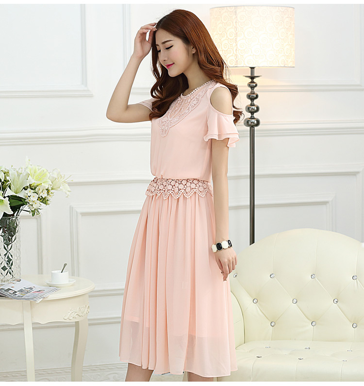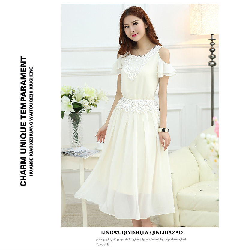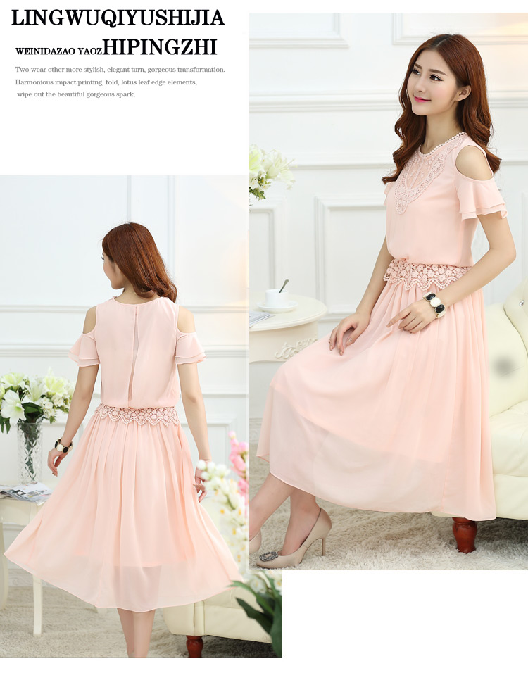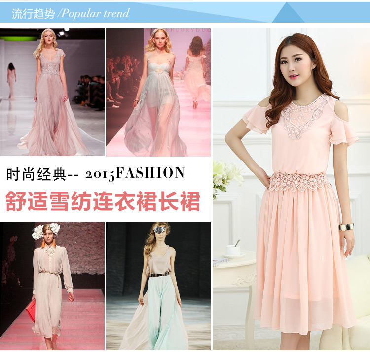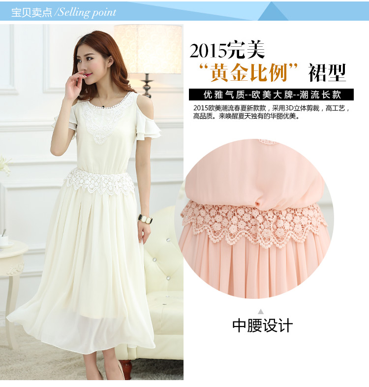 2015春夏新款小清新露肩連衣裙精美繡花舒適雪紡連衣裙長裙